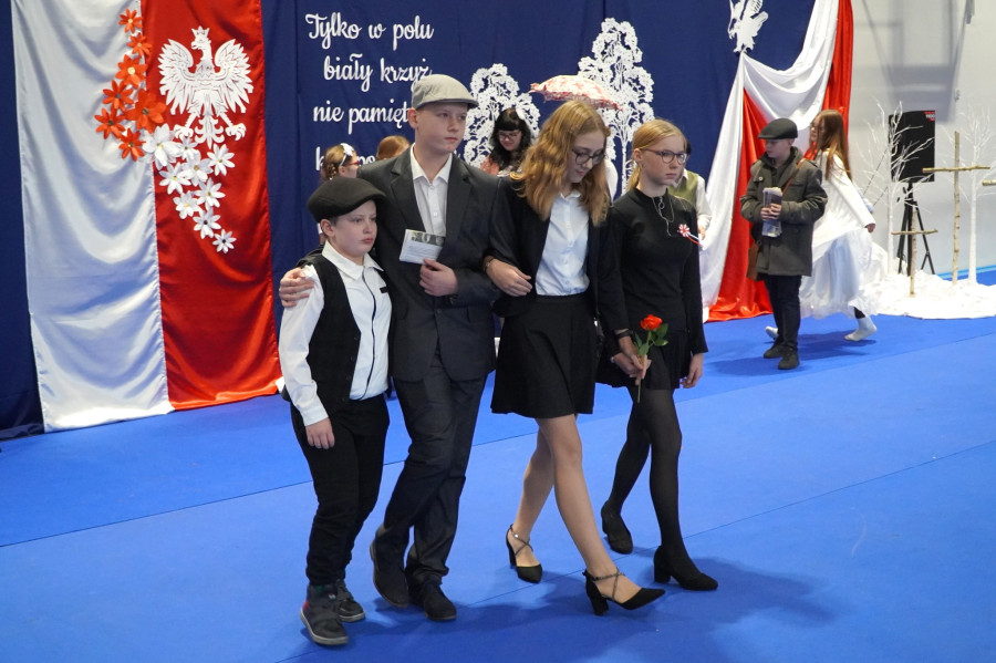 Główna część uroczystości odbyła się w Szkole Podstawowej w Bieganowie. Społeczność szkolna przygotowała spektakl patriotyczny, w którym wystąpili uczniowie.