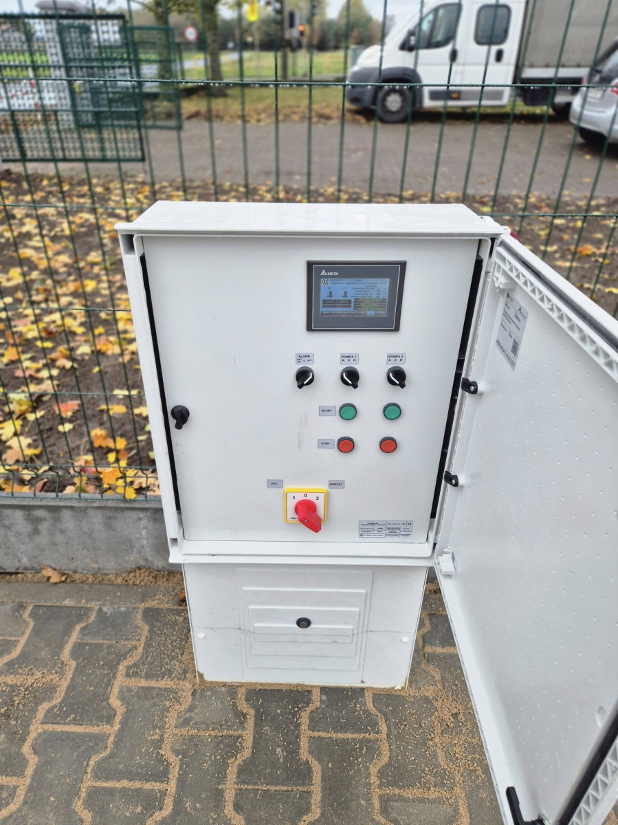 Inwestycja polegała na wymianie zbiornika i szafy sterującej, montażu instalacji, pomp, szafy, a także utwardzenie i ogrodzenie terenu.