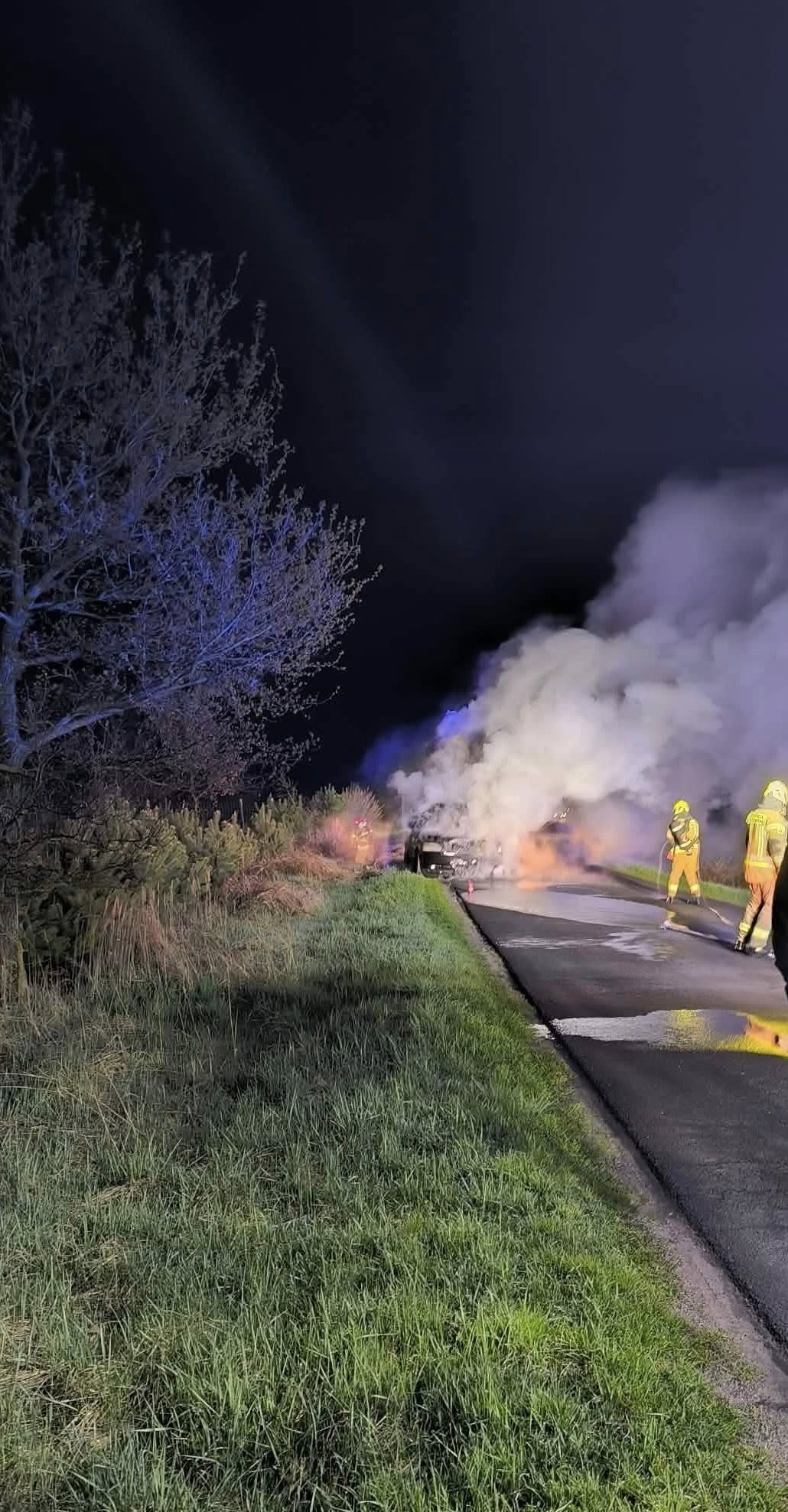 Na miejsce natychmiast skierowano jednostki Ochotniczej Straży Pożarnej z Targowej Górki oraz zastęp z Jednostki Ratowniczo-Gaśniczej we Wrześni. Po przybyciu strażacy zastali pojazd objęty ogniem.