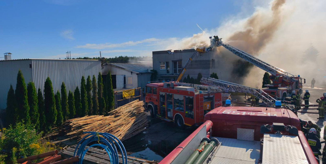 W niedzielę 25 sierpnia, o godzinie 4:02 strażacy otrzymali zgłoszenie o pożarze w miejscowości Szczodrzejewo. Ogień wybuchł w tartaku i szybko objął część biurową oraz produkcyjną zakładu.