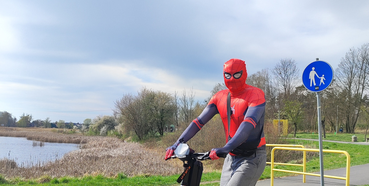 W niedzielę media społecznościowe zalała fala zdjęć Spider-Mana, który przemykał ulicami Wrześni na elektrycznej hulajnodze. Nam również udało się go upolować, gdy pilnował bezpieczeństwa nad wrzesińskim zalewem.