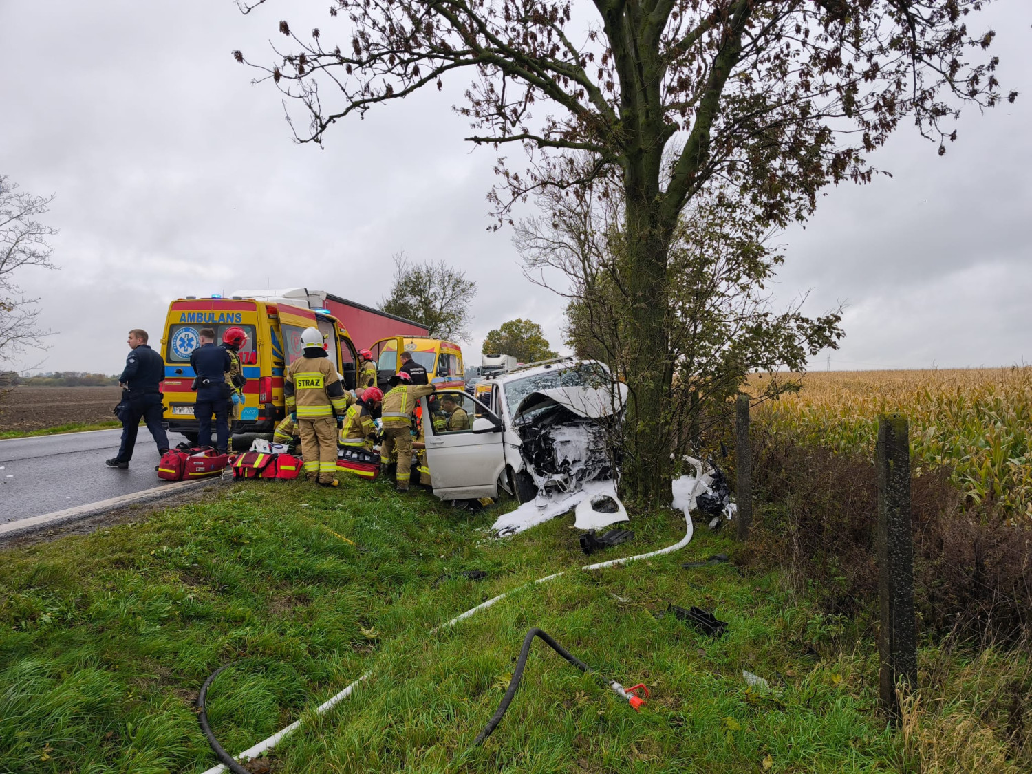 Ze wstępnych ustaleń wynika, że kierowca samochodu osobowego z nieznanych przyczyn zjechał z jezdni i uderzył w drzewo. W pojeździe podróżowały dwie osoby dorosłe oraz troje dzieci