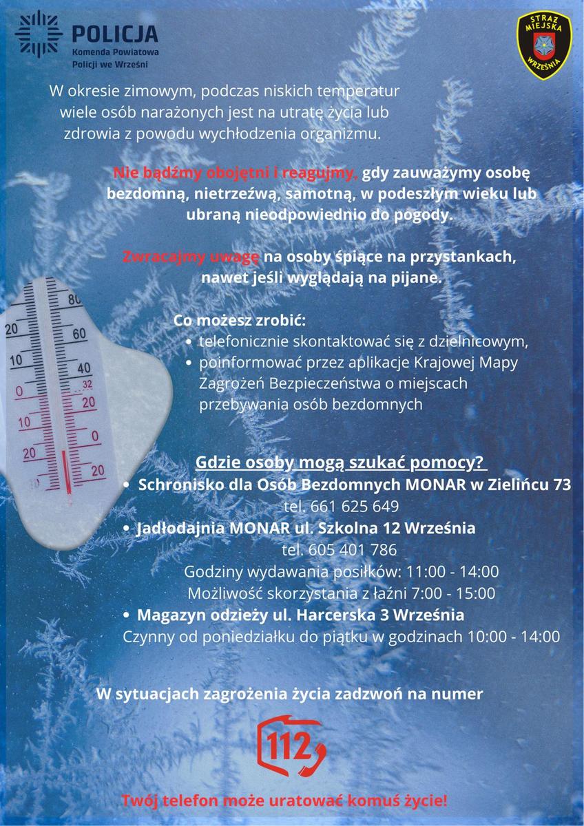 Niskie temperatury stanowią realne zagrożenie dla osób w kryzysie bezdomności. Mróz, wilgoć i silny wiatr mogą w krótkim czasie doprowadzić do wychłodzenia organizmu, a w skrajnych przypadkach nawet do utraty życia.
