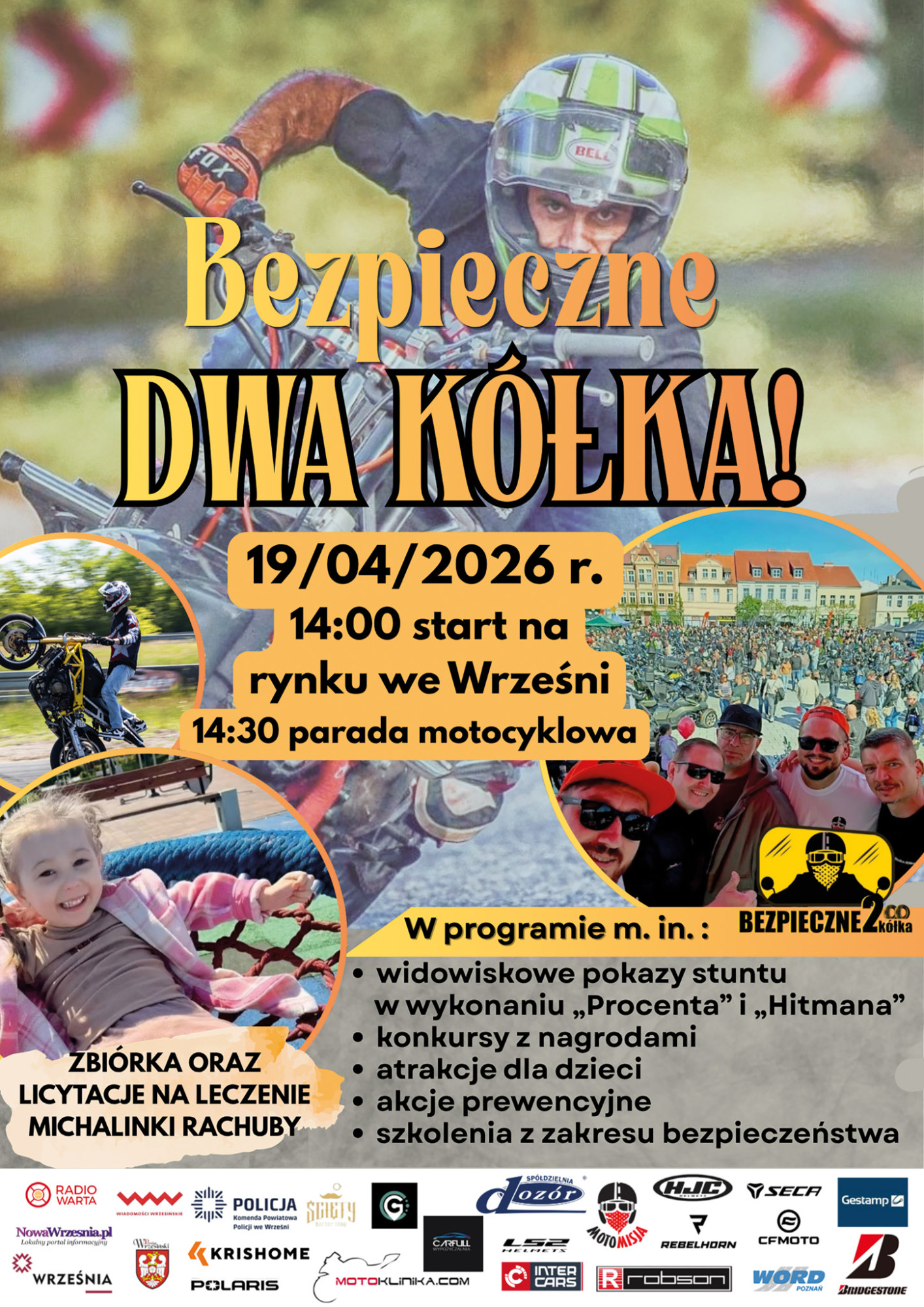 Już 19 kwietnia wrzesiński rynek ponownie wypełni się rykiem silników, zapachem benzyny i setkami motocykli. Punktualnie o 14.00 rozpocznie się kolejna edycja wydarzenia „Bezpieczne dwa kółka", a pół godziny później ulicami miasta przejedzie parada motocyklistów.