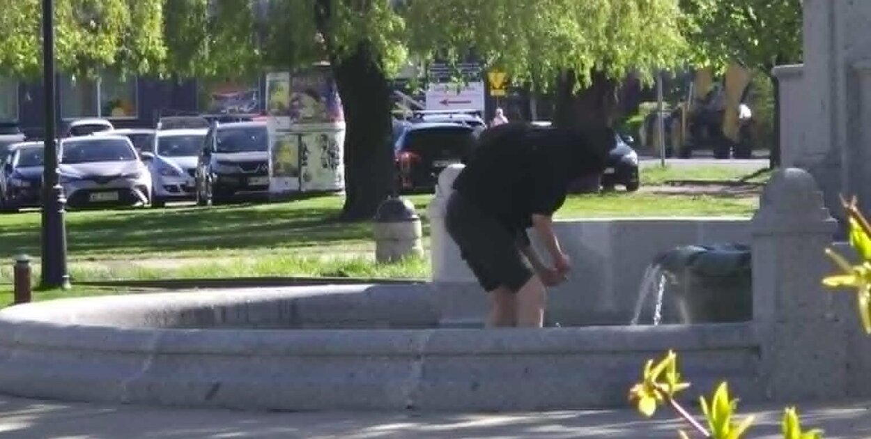 Czy mężczyzna jedynie szukał ochłody w upalny dzień, czy może – wzorem rzymskich turystów przy fontannie Di Trevi – polował na monety wrzucane tam na szczęście? Jedno jest pewne: „fontanna wolności” nabrała dla niego bardzo dosłownego znaczenia.