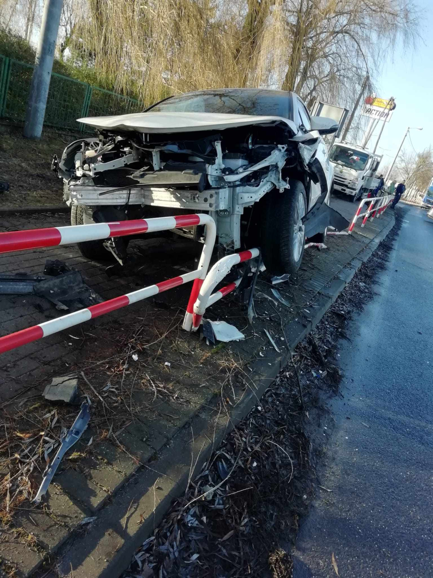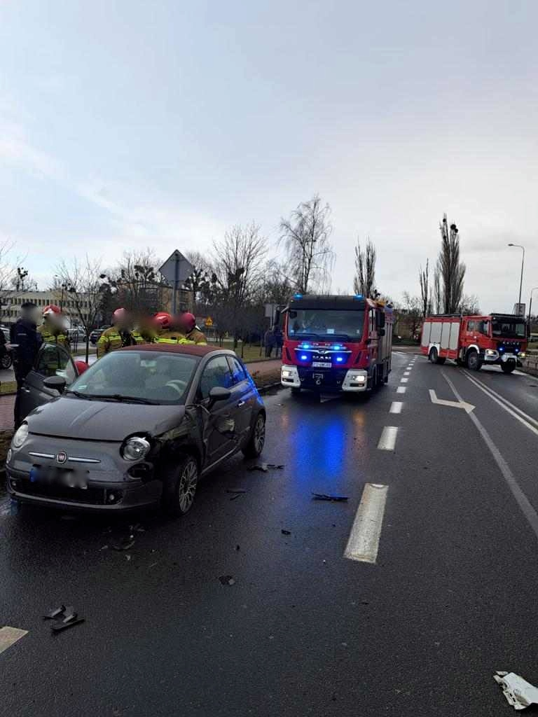 Wypadek zdarzył się na wysokości galerii handlowej Karuzela. W wyniku zderzenia jedno z aut wpadło na chodnik i zawisło na barierkach ochronnych. Na miejscu pracują służby.