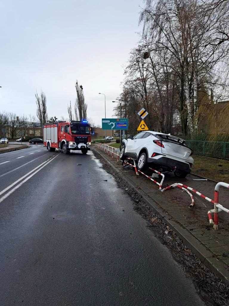 Wypadek przy ul. Kolejowej. Auto wylądowało na chodniku