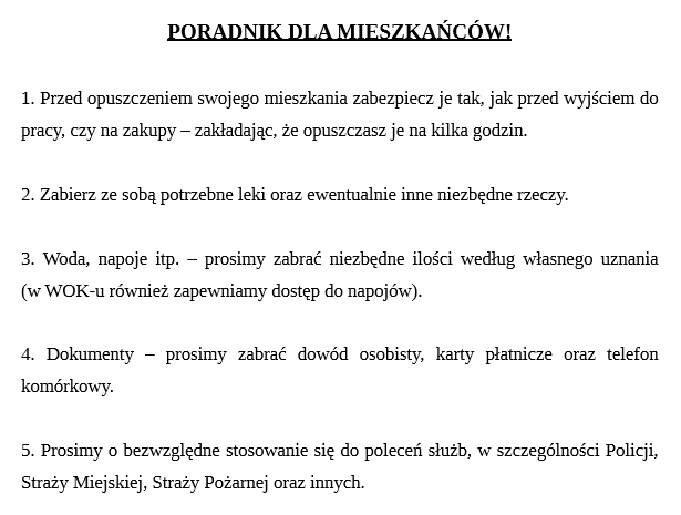 A czy policja i straż miejska będzie pilnowała w tym czasie bloków, które zostaną ewakuowane? Złodzieje nie śpią, szczególnie w ostatnim czasie.