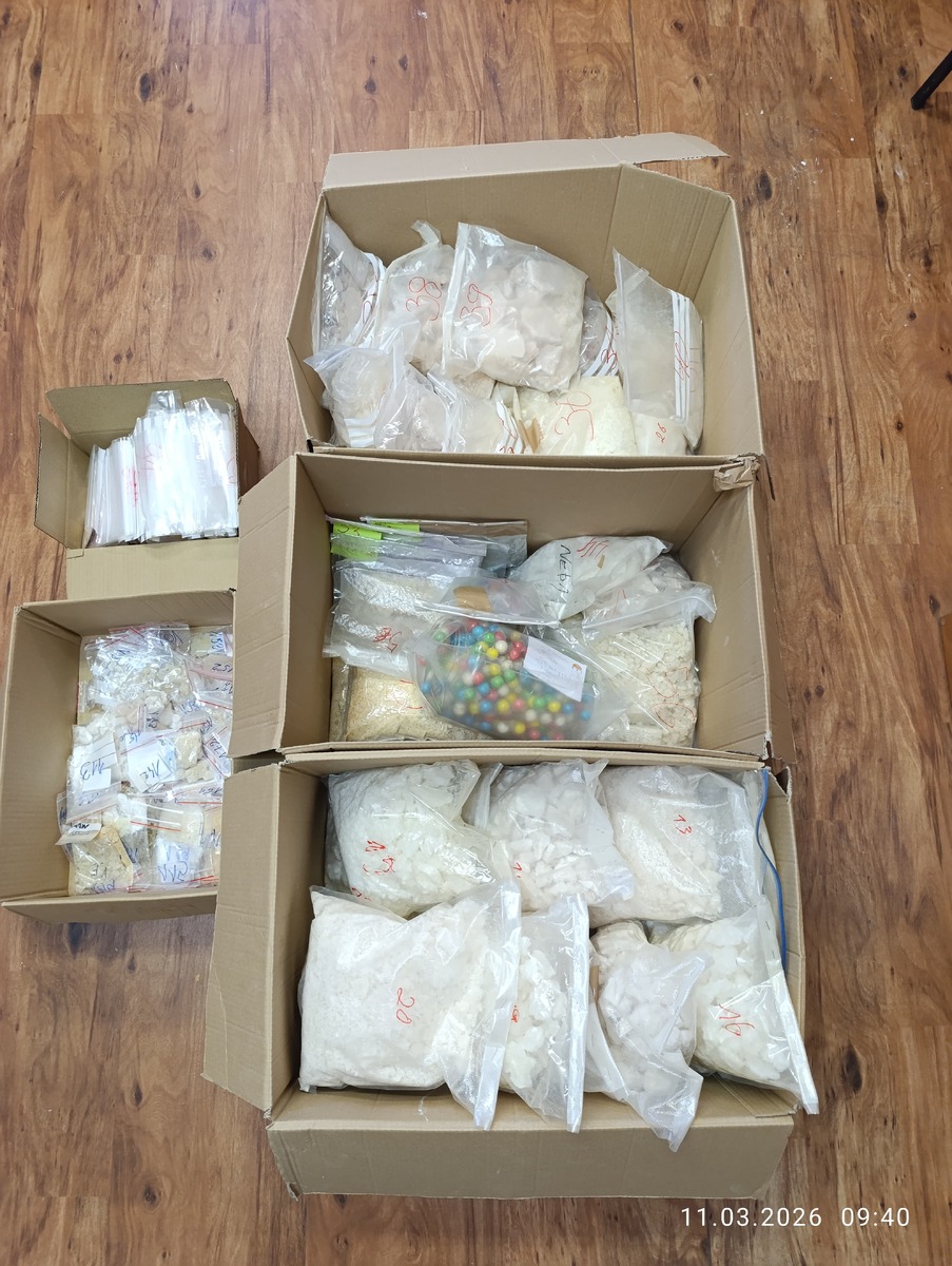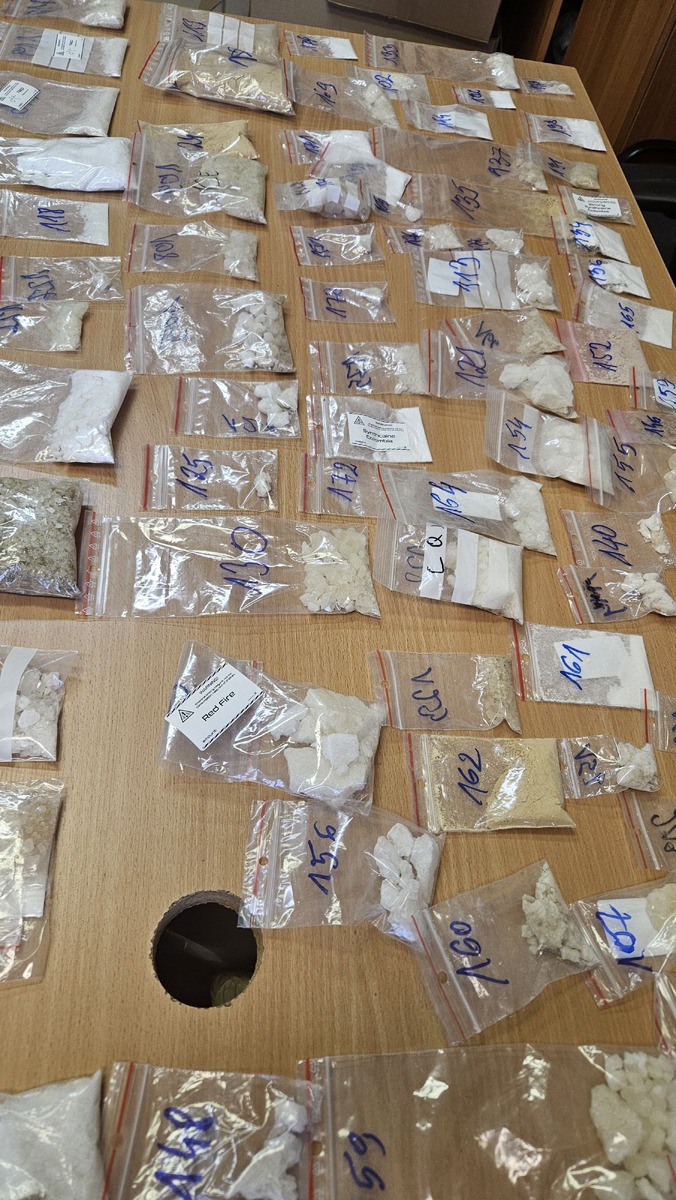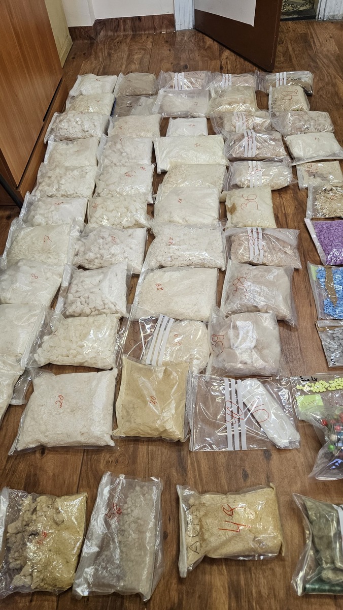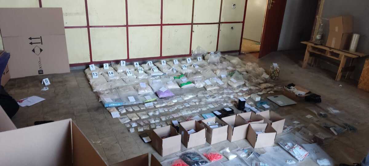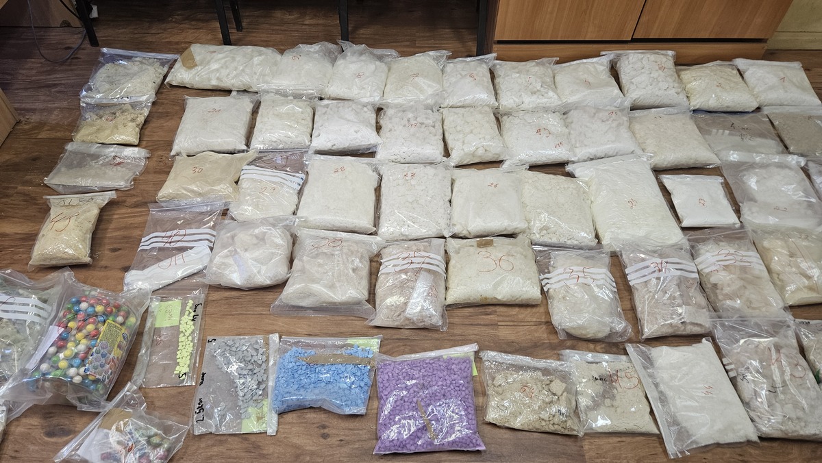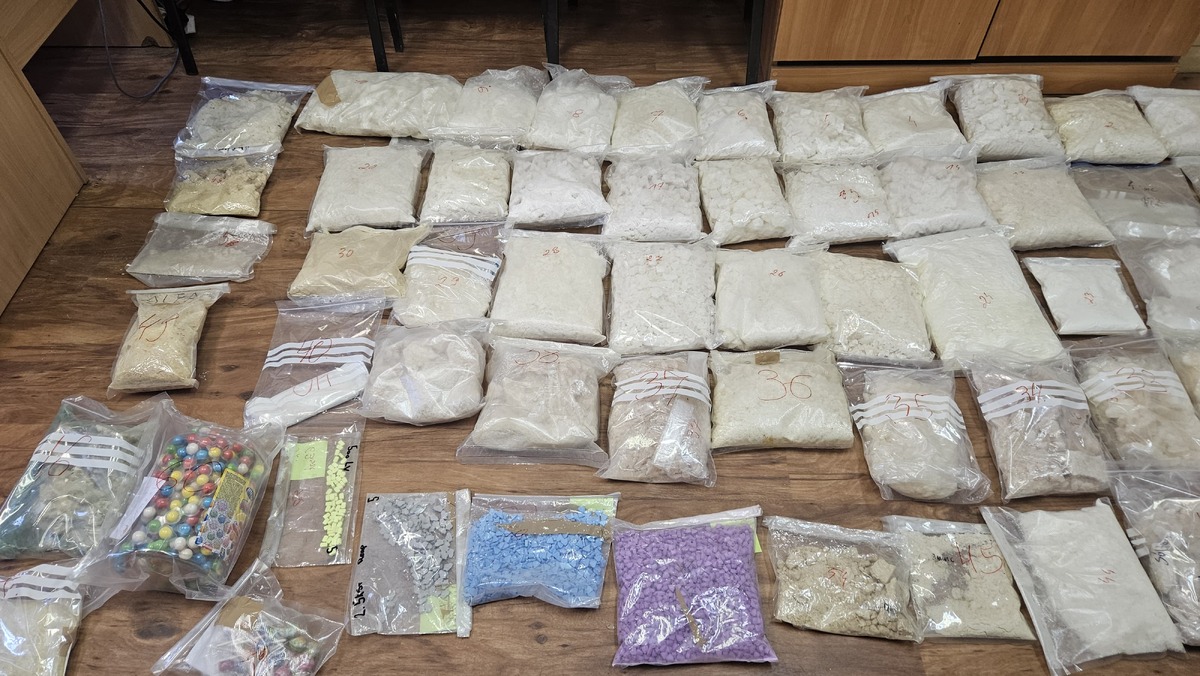 W trakcie przeszukania zabezpieczono ponad 61 kg substancji, w tym mefedron, amfetaminę i MDMA, ponad 3400 tabletek ecstasy, 390 gum i lizaków z zawartością narkotyków oraz ponad 11 tys. tabletek o działaniu psychotropowym i na potencję.