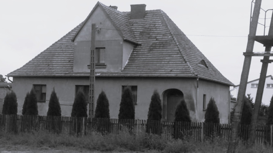 W środku: Budynek szkoły w Łagiewkach – stan z 2020 roku.