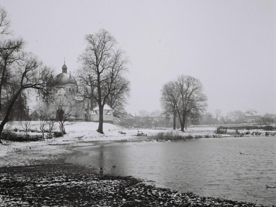 W środku : Kościół pw. św. Andrzeja Apostoła w 1959 r.. Fot. Manfred Kruska ze zbiorów Jerzego Osypiuka