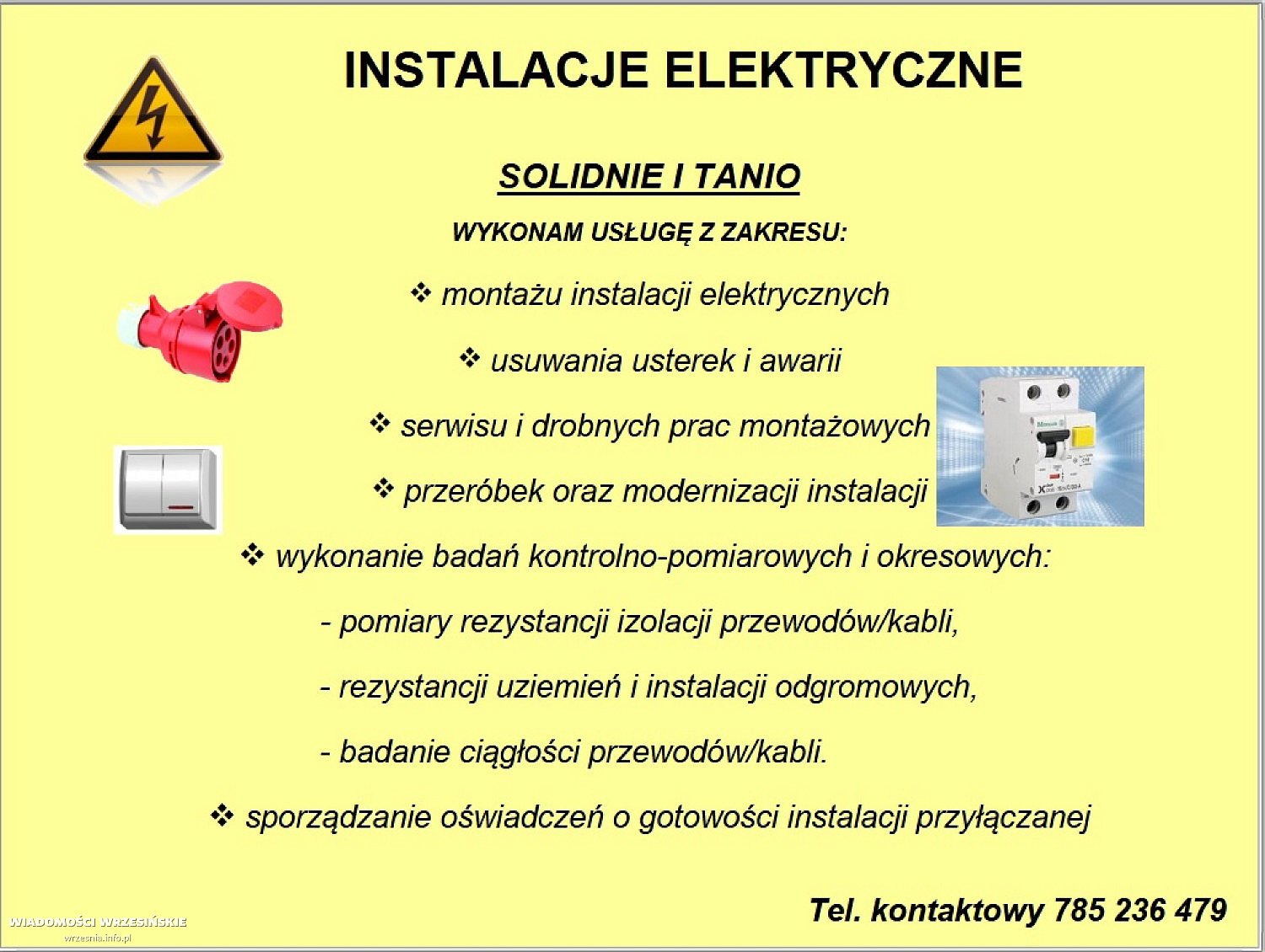 Wykonam usługę montażu instalacji elektrycznych, usuwania usterek/awarii, serwisu oraz prac montażowych, przeróbki a także modernizacja instalacji elektrycznych, sporządzanie oświadczeń o gotowości instalacji przyłączanej. W zakresie również możliwość wykonania pomiarów elektrycznych i sporządzanie protokołów z przeglądu okresowego instalacji elektrycznej (wymóg do ubezpieczyciela budynku). Zapraszam do kontaktu tel. 785 236 479