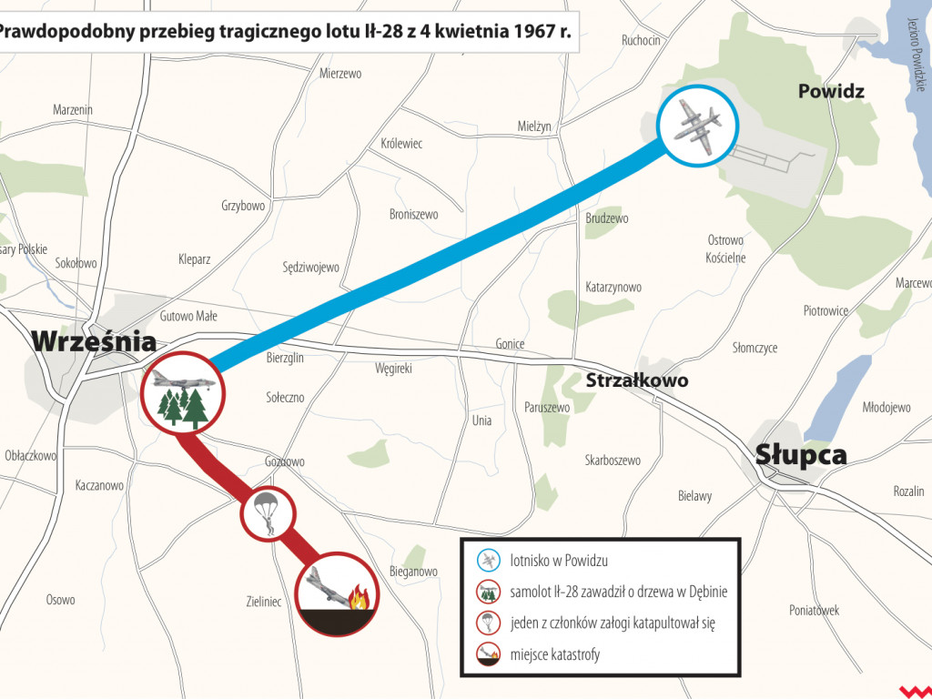 4 kwietnia 1967, około południa, załoga Iła-28 w składzie: ppor. pilot Dymitr Gruszewski, ppor. nawigator Zbigniew Ciuła i strzelec radiotelegrafista st. strz. rtg. Jerzy Śliwiński, wystartowała z lotniska w Powidzu.