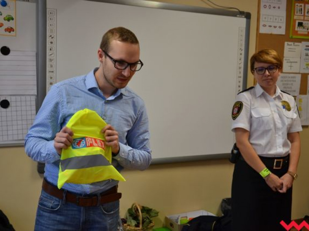 Pierwszoklasiści z wrzesińskich szkół podstawowych otrzymali odblaski w ramach akcji „Bądź bezpieczny – bądź widoczny”.