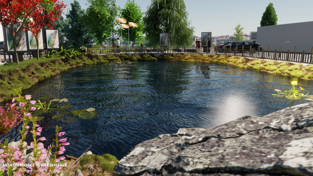 Wizualizacje architektoniczne przebudowy stawku w Kołaczkowie.