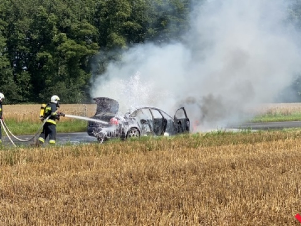 Na drodze wojewódzkiej w Kozubcu, w trakcie jazdy zapalił się samochód osobowy.